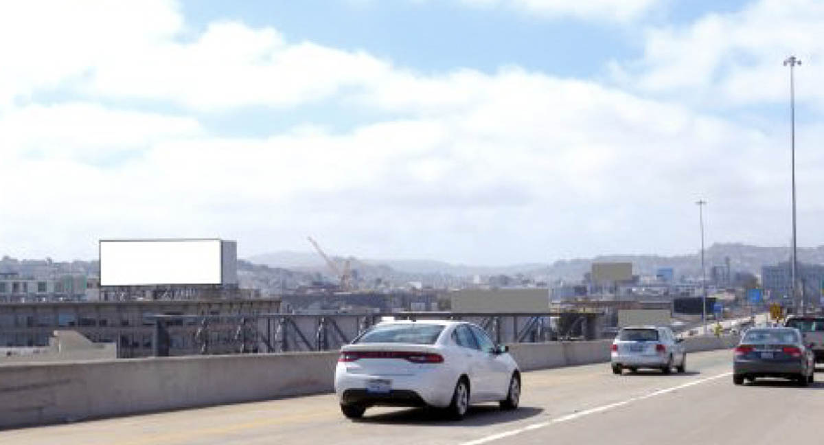This prominent bulletin towers over the famous San Francisco Skyway. Heavy eastbound traffic entering San Francisco from the Bay Bridge is exposed to this dominant structure. The Skyway is the primary link between the metropolitan San Francisco market and the densely populated East Bay region of Northern California. The Skyway also connects San Francisco with affluent Peninsula markets and the San Francisco International Airport.