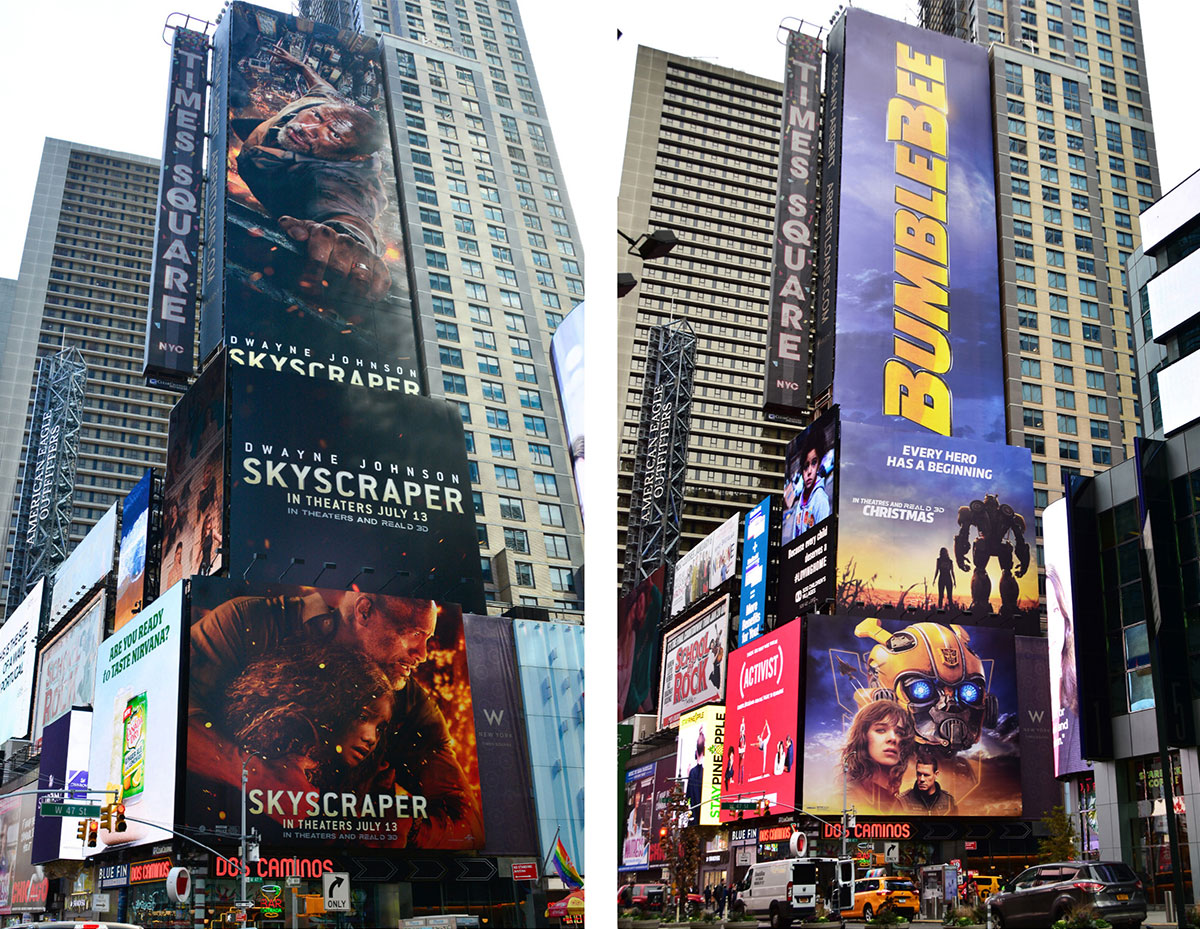 Visibility from as far as 9 blocks North on Broadway (144). Front lit, printed vinyl