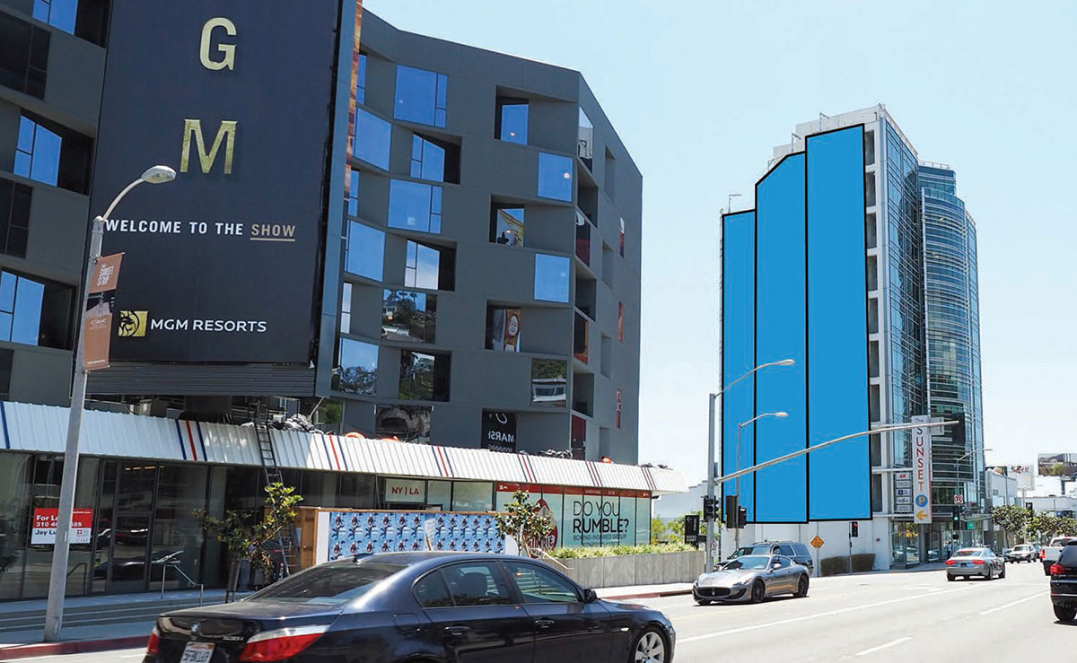 This wallscape is located on the Sunset Millennium in the heart of West Hollywood